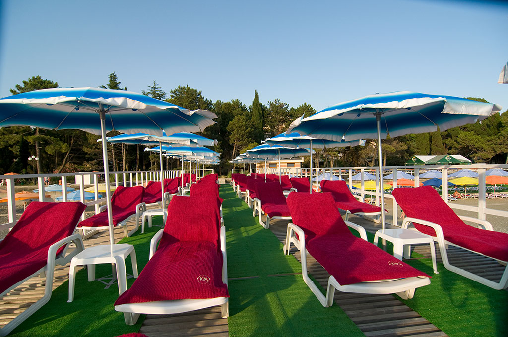 28) пляж: собственный галечный оборудованный пляж шириной 375 м. На пляже есть кабинки для переодевания, летние душевые кабинки, мужской и женский аэрарии, пляжные зонты и шезлонги. Около пляжа — лодочная станция, где напрокат можно взять катамаран.